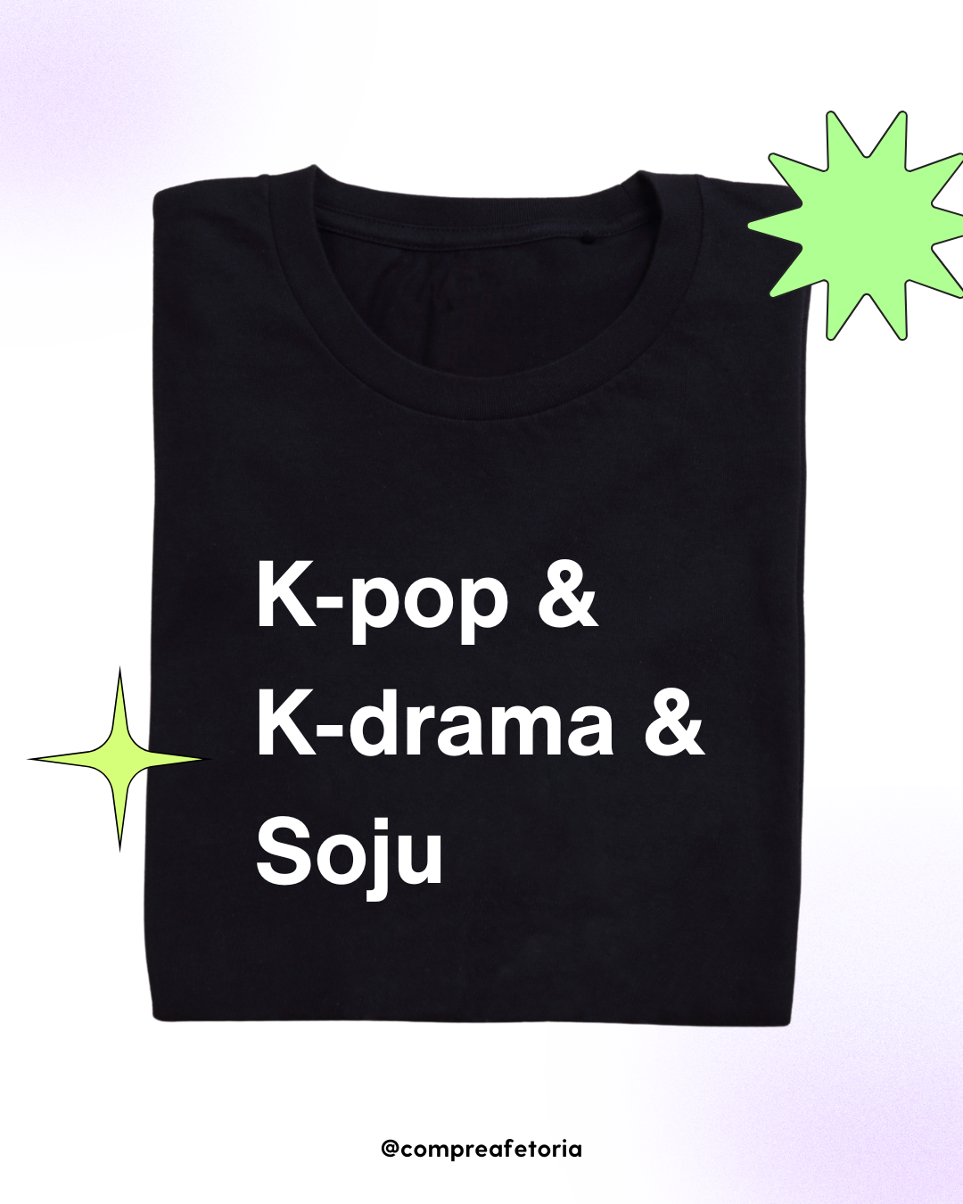 Camiseta K-pop, K-drama e Soju – Preta