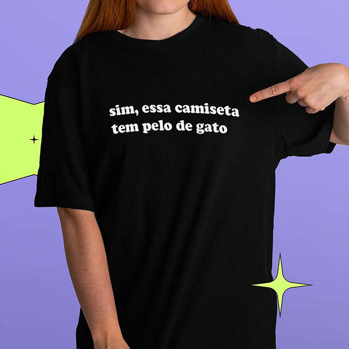Camiseta Preta Que tem Pelo de Gato